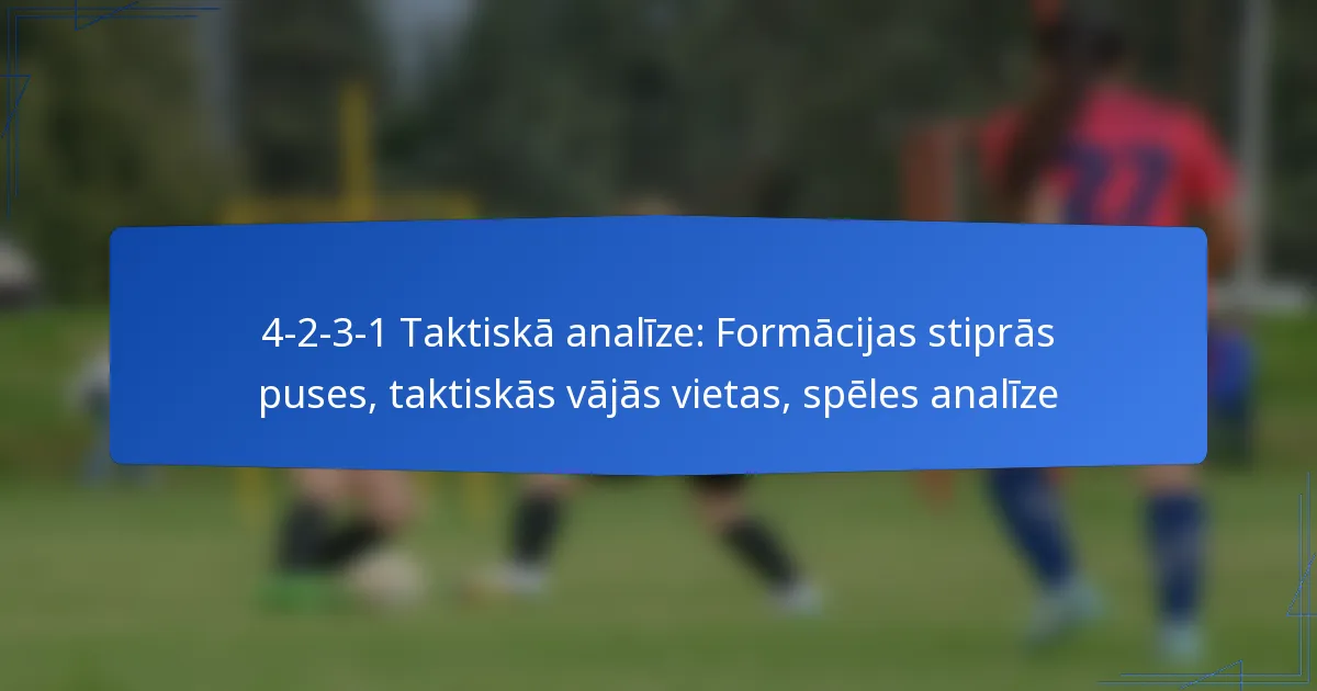 4-2-3-1 formācija piedāvā līdzsvarotu pieeju gan aizsardzībai, gan uzbrukumam, padarot to populāru dažādām komandām. Lai gan tā nodrošina aizsardzības stabilitāti un centrālo pussargu kontroli, tai ir arī potenciālas vājības, ar kurām komandām jārisina.
