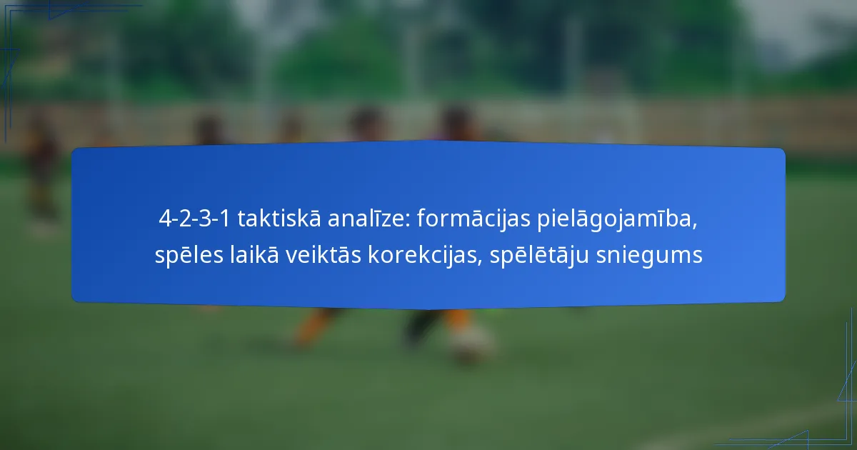 4-2-3-1 formācija ir populārs taktiskais izkārtojums futbolā, kas uzsver gan aizsardzības stabilitāti, gan uzbrukuma elastību. Tā sastāv no četriem aizsargiem, diviem centrālajiem pussargiem, trim uzbrūkošajiem pussargiem un viena uzbrucēja, ļaujot komandām efektīvi presēt pretiniekus, vienlaikus saglabājot spēcīgu pussarga klātbūtni.